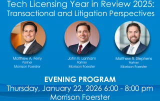 Susan Finch2026-01-26T15:22:01-08:00Attorneys from Jones Day’s IP group will discuss key developments relating to invalidity challenges in Europe and the United States in light of PTAB, EPO, and UPC changes. Presenters: Dr. Olga Bezzubova (Partner) & Christopher Hodge (Associate) Date: Thursday, February 19, 2026 Time: 6:00 - 7:00 p.m. networking and heavy appetizers, 7:00 - 8:00 p.m. presentation Location: [...]
